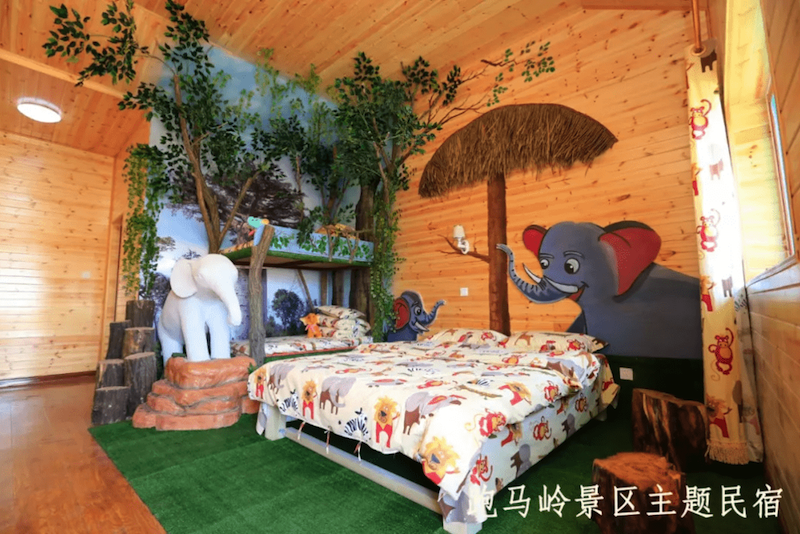 我們獨(dú)特的民宿主要分為:森林密境-鸚鵡、野趣天堂-猴子、穿越竹林-熊貓、奇幻夢(mèng)境-大象等四個(gè)主題房間,小屋內(nèi)部設(shè)有雙人大床、兒童床、洗手間、空調(diào)等設(shè)施。
