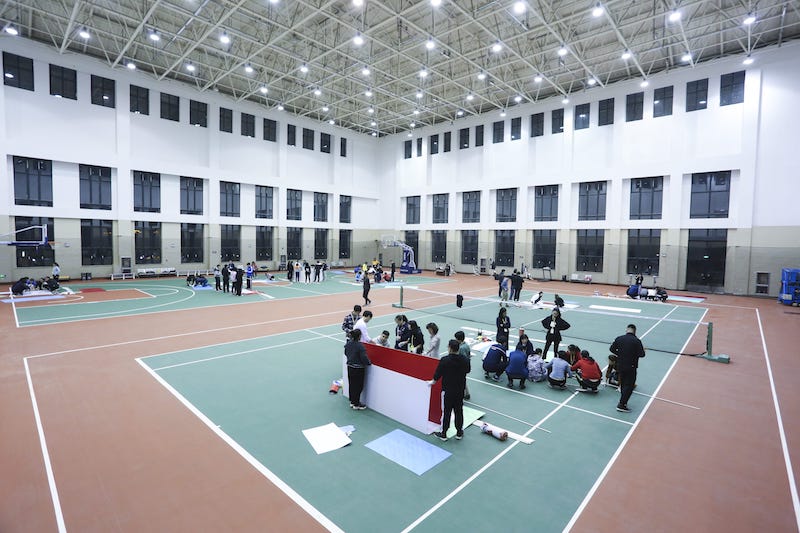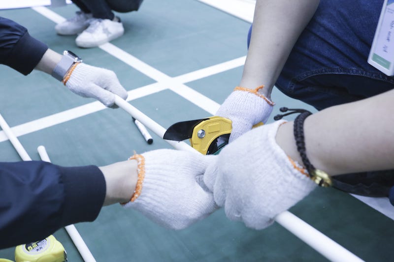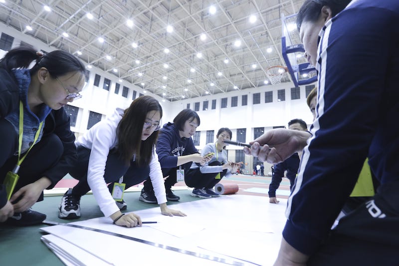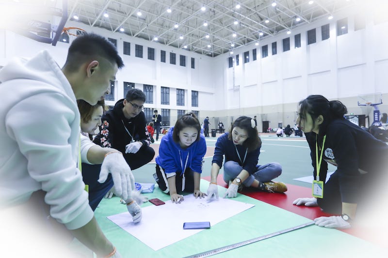 3日晚間,全體學員在市委黨校文體中心籃球場開展了素質拓展體驗課程—共筑家園活動。規則為每個小組領取筑屋物料,并以團隊為單位利用給出的道具、材料等物資,設計,施工,裝修組內的建筑及外部環境,完成建造挑戰,并向全體學員作闡述說明。