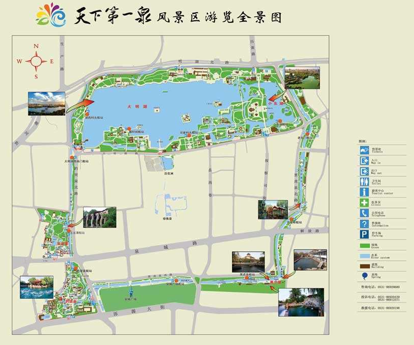 景區(qū)總面積3.1平方公里,由“一河(護(hù)城河)、一湖(大明湖)、三泉(趵突泉、黑虎泉、五龍?zhí)度笕海⑺膱@(趵突泉公園、環(huán)城公園、五龍?zhí)豆珗@、大明湖風(fēng)景區(qū))”組成,是集獨(dú)特的自然山水景觀和深厚的歷史文化底蘊(yùn)于一體的旅游景區(qū),風(fēng)景優(yōu)美。