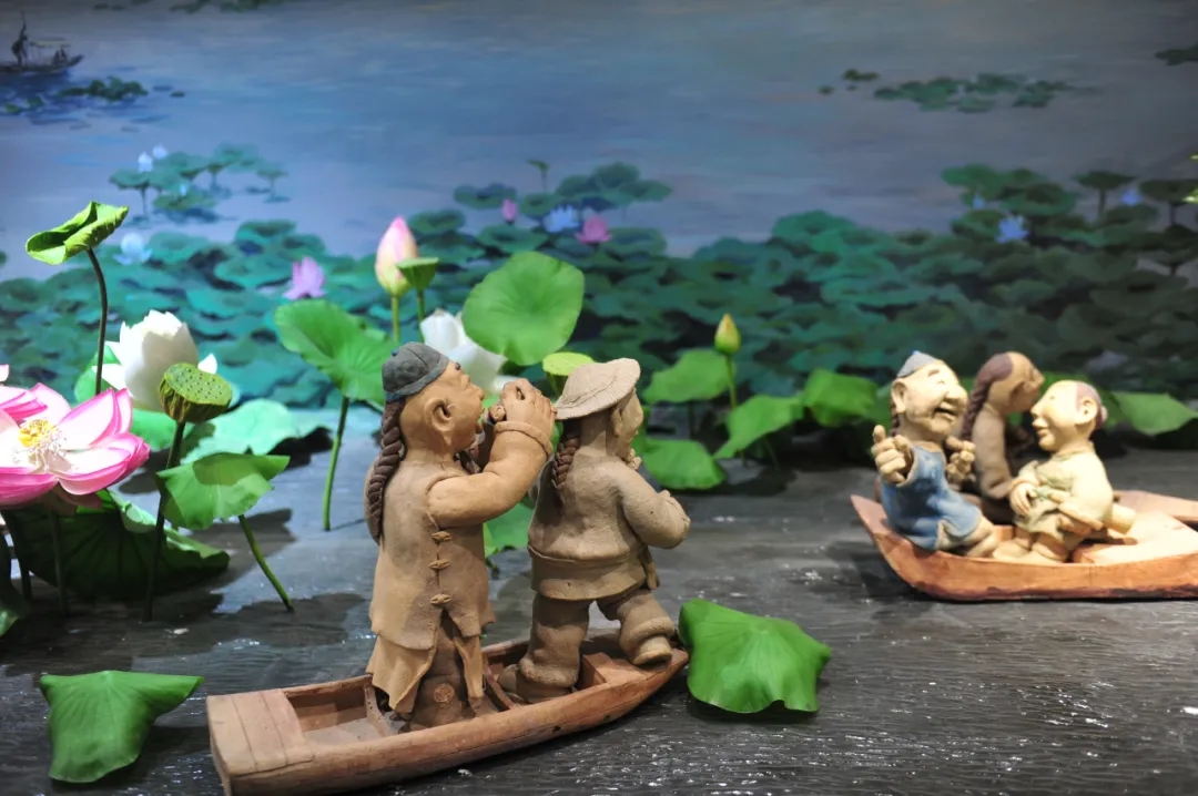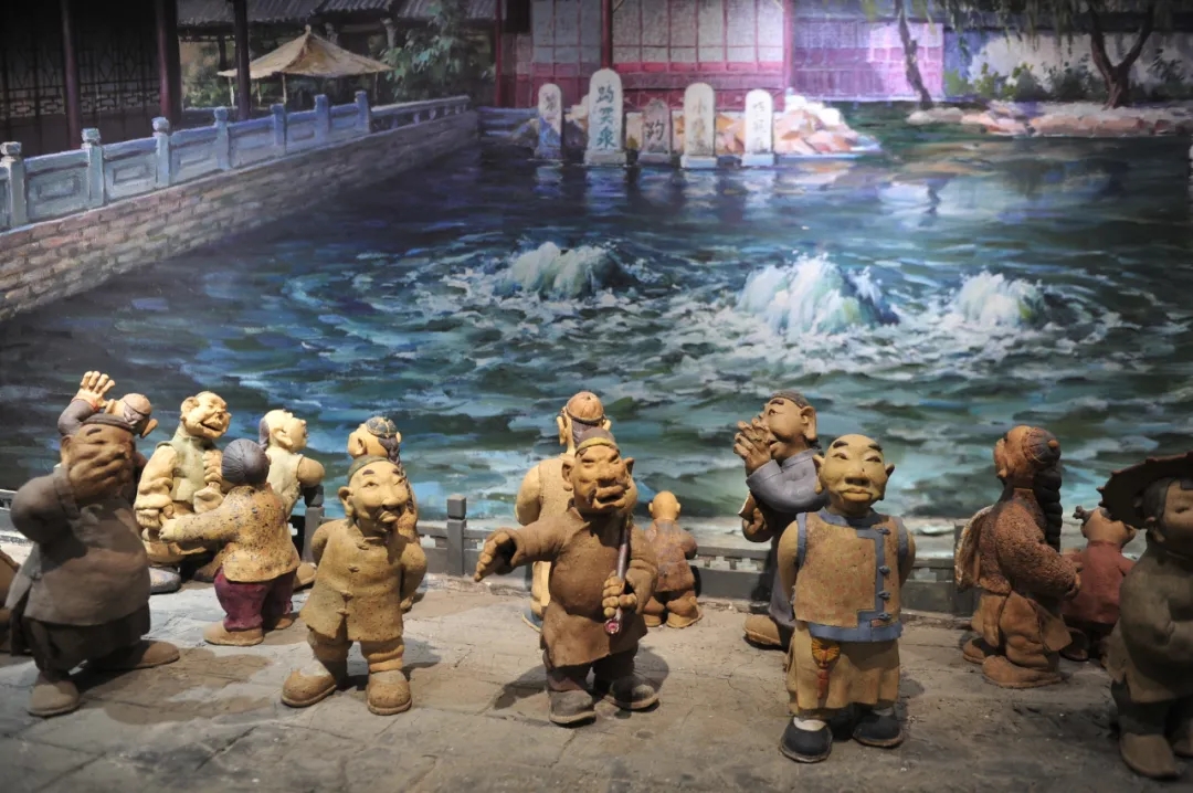 位于超然樓內(nèi)的《泉水人家》泥塑作品,造型逼真,神態(tài)各異,情景交融,生動的還原了當(dāng)時濟(jì)南的市井生活,把以前的泉城刻畫得淋漓盡致,趵突泉等標(biāo)志性景觀都位列其中,泥人的姿態(tài)也是各種各樣,令人目不暇接。