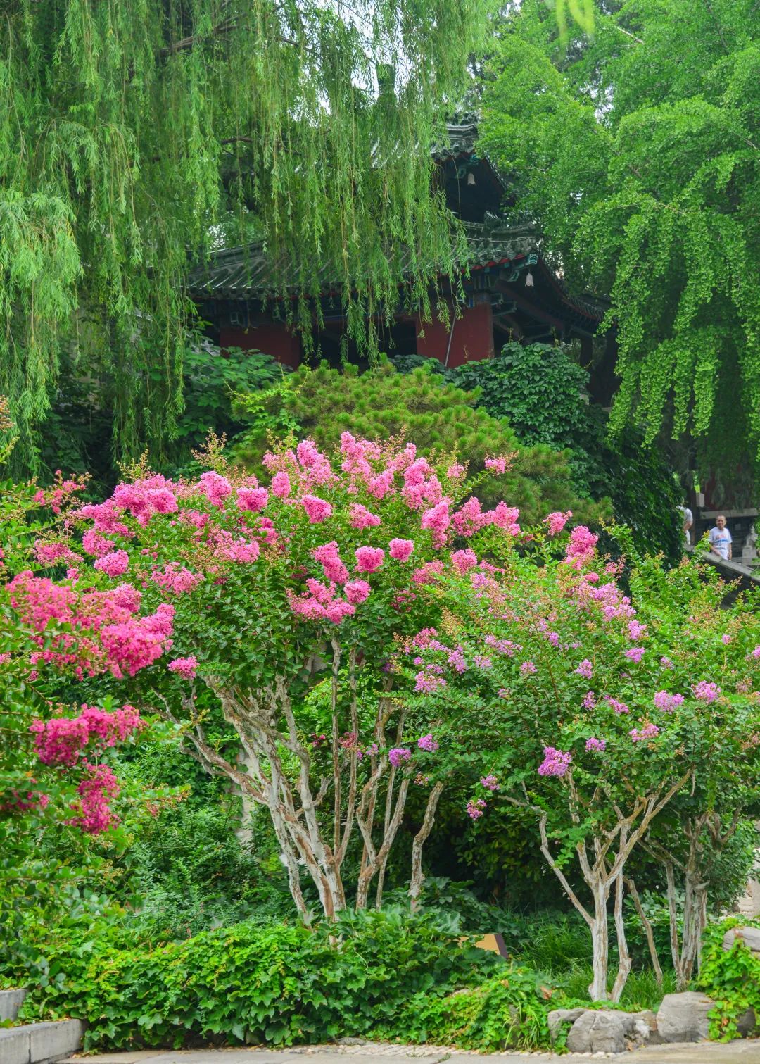 紫薇花又稱癢癢花、紫金花等,紫薇樹姿優美,樹干光滑潔凈,花色艷麗,花期極長,從初夏一直可以開到晚秋,所以又稱為百日紅。“盛夏綠遮眼,此花紅滿堂”是對紫薇花的贊語。