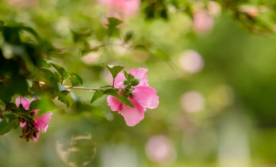 在大明湖景區就有不少木槿花,像穿著家居服的小家碧玉,沒有那么多的嬌媚和妖艷,卻也兀自釋放著芬芳,絢爛著火熱的夏季。