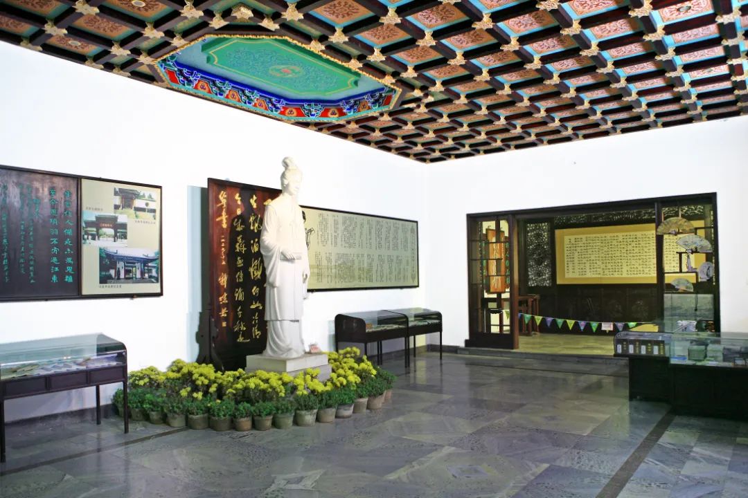 排列整齊的玻璃柜里,陳列著李清照著作的各種版本和后人研究李清照的專著、期刊等。院內栽植以李清照詩詞意思配置的名貴花木。春夏秋冬四季皆景,生機盎然。