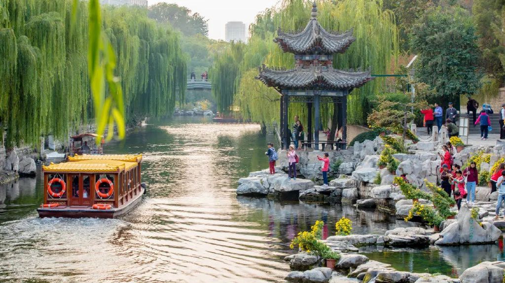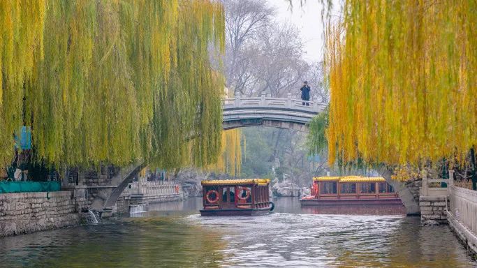 品味濟南護城河的美,最妙的便是乘坐畫舫游船,聽潺潺泉韻,賞一水秋色。