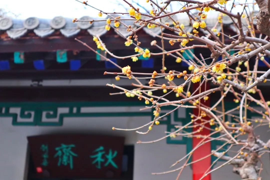 在大明湖藕神祠內,有些蠟梅樹樹葉還沒有來得及脫落,黃色的花蕾就已經悄悄地冒出了頭,那滿枝的黃色花苞預示著一場冬日香氣盛宴即將開啟。在古色古香的建筑中,這里的蠟梅獨添了份韻味,增了些古雅。