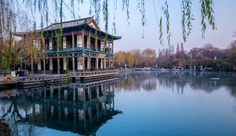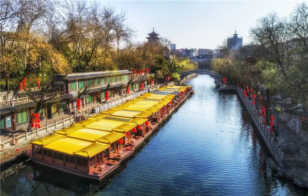 冬日的濟南護城河泉水湛清,看得河底明明白白。這是國內唯一由泉水匯流而成的護城河, 最終流入大明湖。雖然冬日里已經沒了翠綠垂柳的裝點,但是沿著護城河走一走,依舊會看到不一樣的風光。
