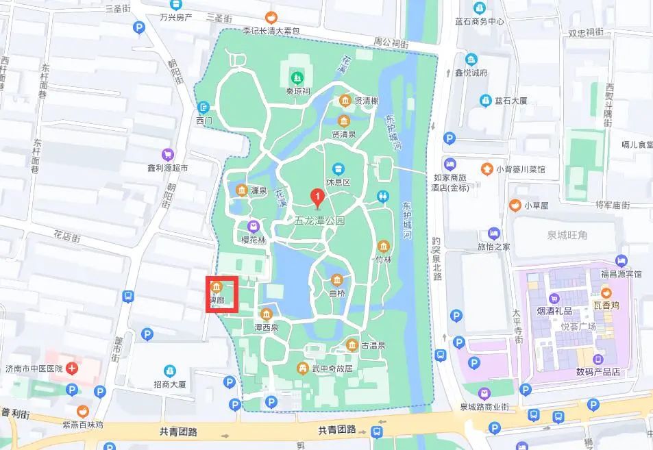 遐園位于大明湖南門西側,院內山石嶙峋,游廊迂回,亭臺巧置,有讀書堂、明漪舫、浩然亭等建筑,均造型巧妙,古樸典雅,被譽為"濟南第一標準庭院”。