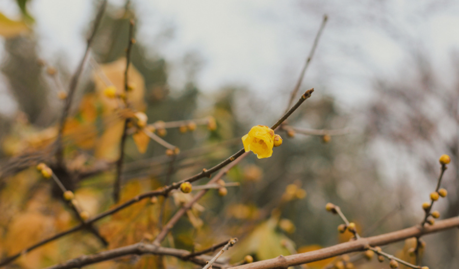 每當花開都會吸引不少攝影師前來拍照,鵝黃色的小花猶如石蠟雕成,嬌嫩的色彩和那特有的暗香給寒冬帶來了一片溫馨。