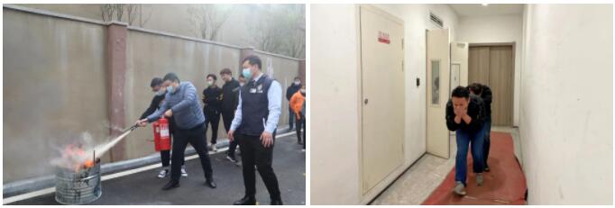 本次培訓專門安排了高層疏散逃生、滅火演習實戰環節。高層疏散逃生演習按照工作分工,分成四組,從啟動報警疏散的信號后,各小組負責人組織人員進行疏散,各小組排成一路縱隊,步行下樓,快速、有序、準時撤離到一樓安全地點。滅火演練在辦公樓南側區域進行,專家現場對滅火器的性能及使用方法進行講解,隨后員工進行了滅火器的實際操作演練。