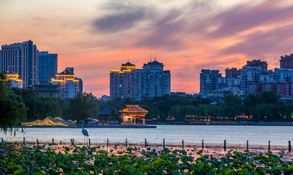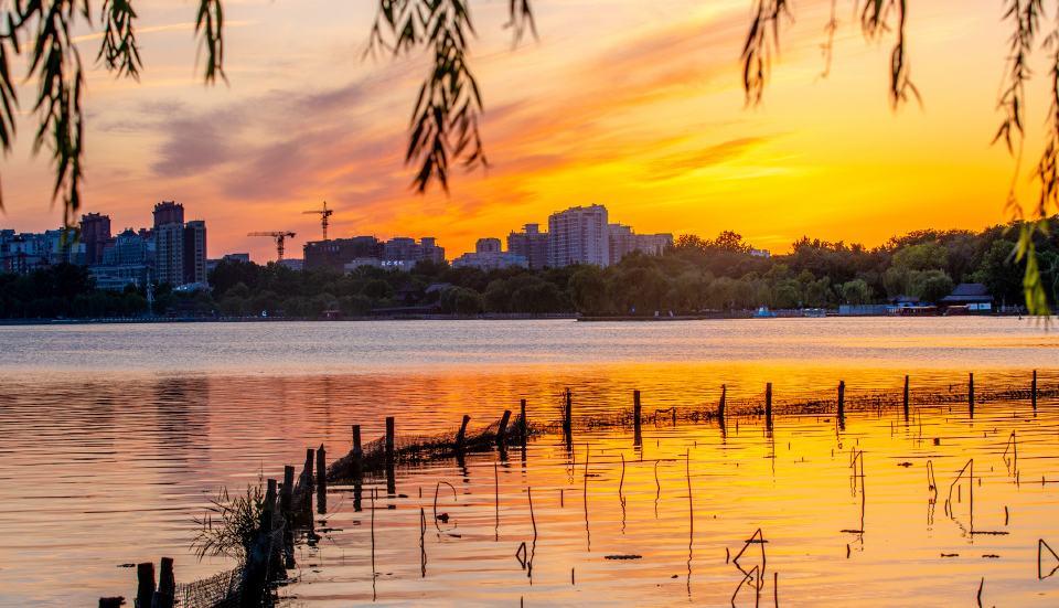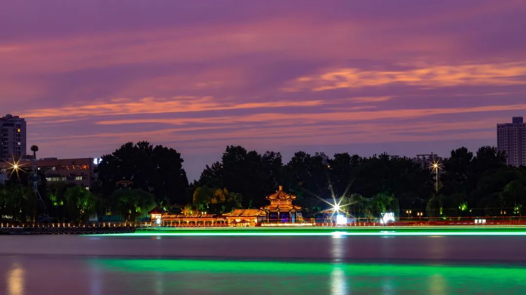 夏日的大明湖經(jīng)常會(huì)遇到晚霞