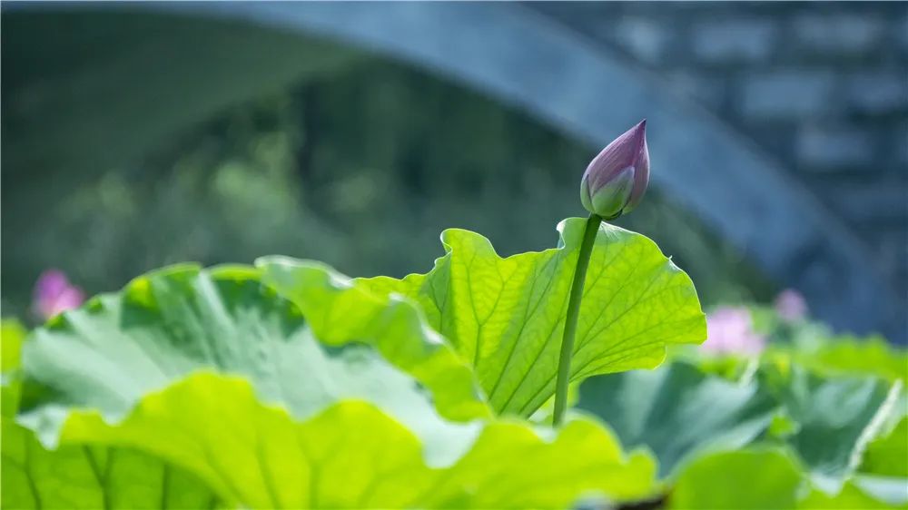 踏著小橋,慢慢走近荷塘中