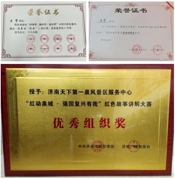 天下第一泉景區(qū)優(yōu)秀講解員王霄在系列宣講比賽中屢獲殊榮
