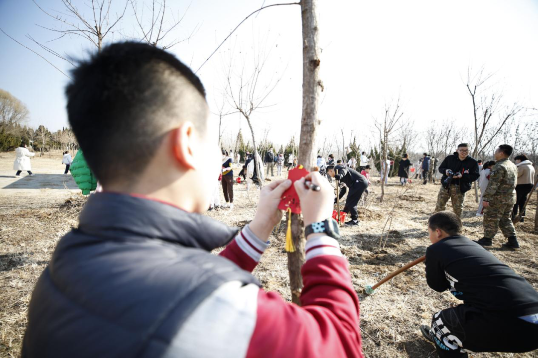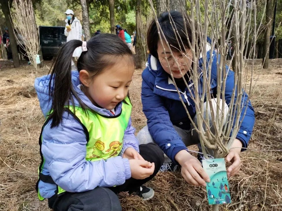 通過懸掛愛心樹牌,給小樹起名等環節,祈福許愿,讓孩子和小樹一起成長。