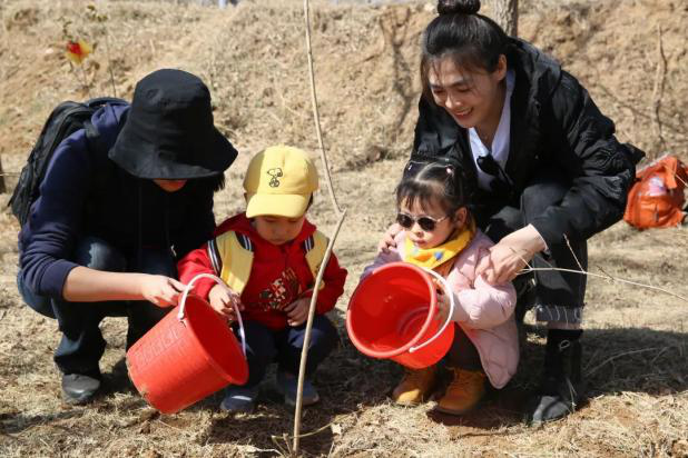 不少家庭全家出動,帶孩子體驗“動手”的意義,一起在濟野留下一抹綠色。