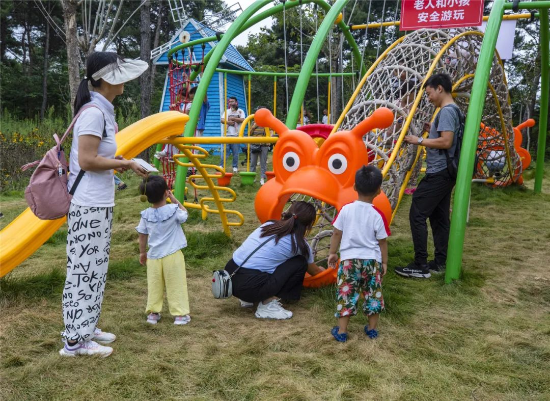 歡樂部落里各種好玩的網紅滑梯、秋千、蹦床等無動力設施仿佛充滿魔力,把小朋友們都牢牢地黏在上面,玩多久都不想離開。