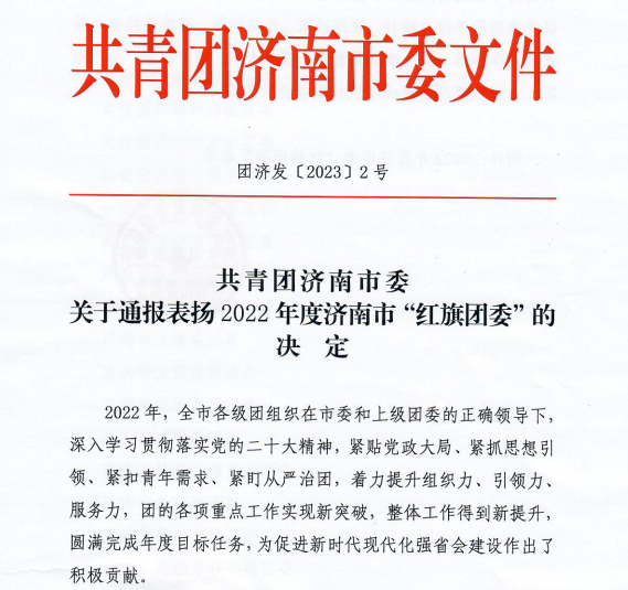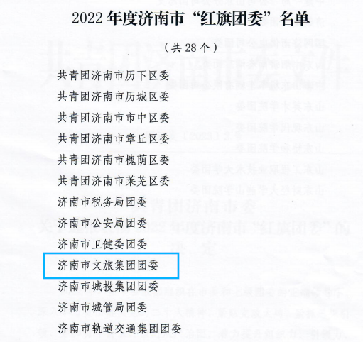 3月2日,共青團濟南市十七屆六次全委(擴大)會議召開。會議下發了《共青團濟南市委關于通報表揚2022年度濟南市“紅旗團委”的決定》,濟南文旅集團團委榮獲2022年度濟南市“紅旗團委”榮譽稱號。