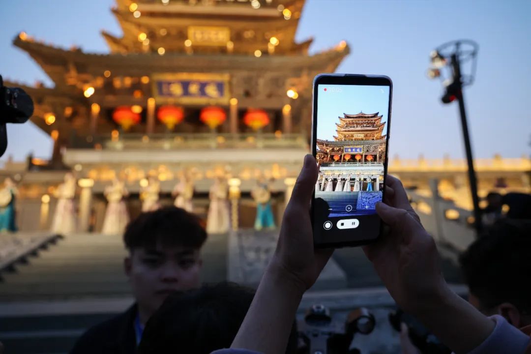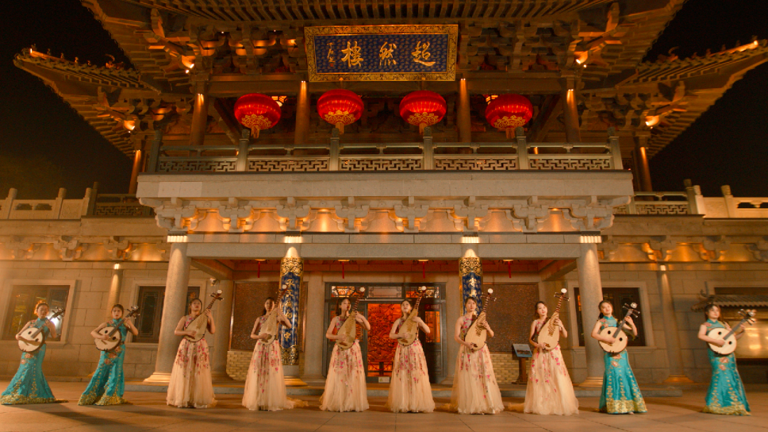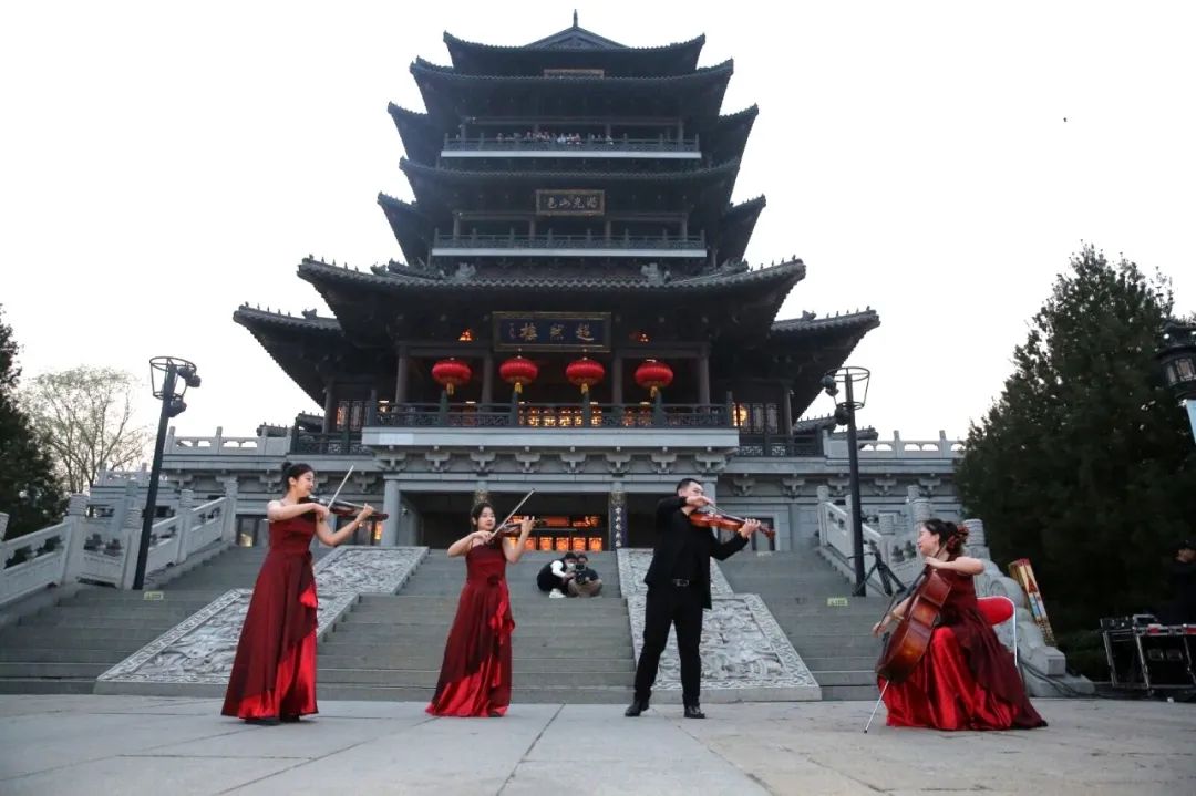 緊接著旋律變換,哈薩克族民歌《瑪依拉》接續上演,音樂高亢嘹亮,富有獨特的民族風格,將現場氛圍推向高潮,超然樓的古樸厚重與樂聲的高亢活力激情碰撞,演繹出一幅文藝與文化、文旅跨界交融的絕美畫面。