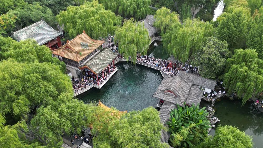 8月13日,游客在趵突泉公園游玩 無(wú)人機(jī)照片