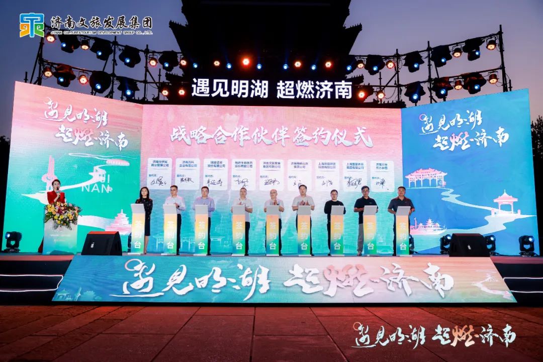 為了更好地踐行“百”企聯動,搭建以企業為主體、市場為導向的開放型合作平臺。發布會現場舉行了文旅集團合作品牌簽約儀式。濟南文旅集團分別與濟南舜耕山莊集團公司、梅曄生物醫藥股份有限公司、上海嗶哩嗶哩科技有限公司、國金證券股份有限公司、上海復星體育集團有限公司、濟南萬科企業有限公司、濟南方特東方神畫、濟南華僑城商業管理公司等品牌代表進行戰略協議簽訂。未來簽約單位將圍繞泉城夜經濟課題研究、文旅體產業運營、智慧文旅建設、文旅產業衍生品開發、投融資項目合作、文旅IP項目打造等方面開展合作。
