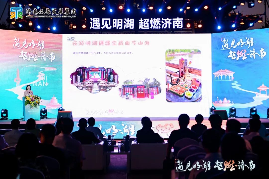 發布會現場,濟南文旅集團分享推薦官進行了“遇見明湖”項目現場推介。百萬粉絲文旅創作達人山東Nini分享了“遇見明湖”中的七大夜游場景潮玩攻略。